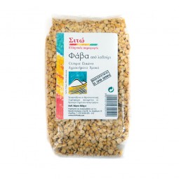 Fava de lathyrus, légumineuse proche de la fève réputée très digeste. Riche en fer, potassium, magnésium, vitamines B, C, E, acide folique et protéines. Elle sert à la préparation de la fameuse pâte homonyme servie en entrée.