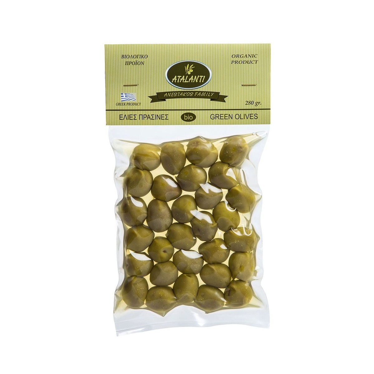 Dénomination : Olives Atalanti BIO Vertes entières 280g égoutté - Βιολογικές πράσινες ελιές Αταλάντης 280g