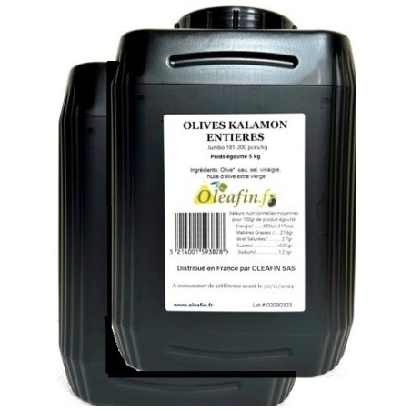 Dénomination : Olives Kalamata entières 2x5kg égouttés - Eλιές Καλαμών ολόκληρες 2x5kg