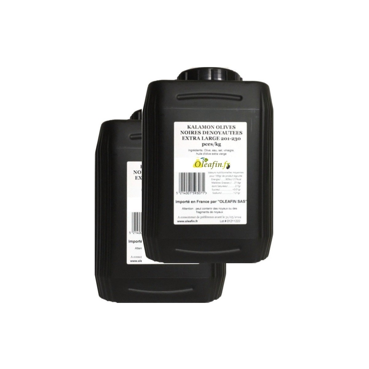 Dénomination : Olives Kalamata dénoyautées 2x5kg égouttés - Eλιές Καλαμών εκπυρηνωμένες 2x5kg