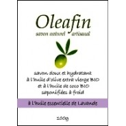 Savon naturel OLEAFIN à l'huile d'olive extra vierge BIO et à l'huile de coco BIO saponifiées à froid, parfumé à l'huile essentielle de Lavande 100g